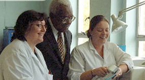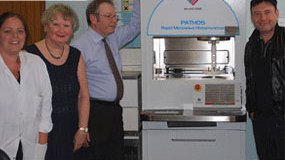 Jimmy White, MBE, presented the £80,000 Pathos, an automated rapid tissue processor, to the Pathology Department. The new system will greatly improve the way Pathology functions by allowing faster reporting of specimens than previously.